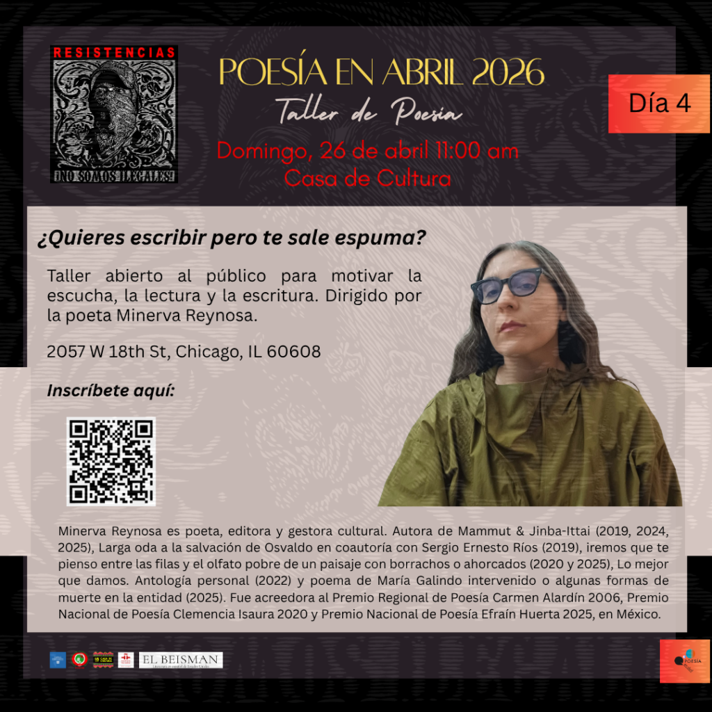 El taller será dirigido por la poeta mexicana Minerva Reynosa, autora de libros como Mammut & Jinba-Ittai y Lo mejor que damos, y reconocida con premios como el Carmen Alardín, el Clemencia Isaura y el Efraín Huerta. Su trabajo cruza poesía, edición y experimentación textual, impulsando espacios colectivos de creación.
